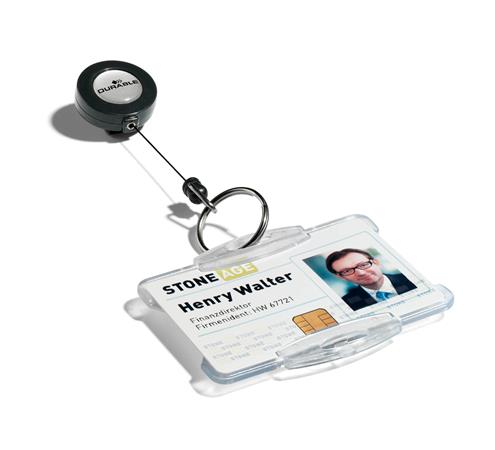 Azonosítókártya-tartó, kihúzható, kulcskarikával, DURABLE, antracit
